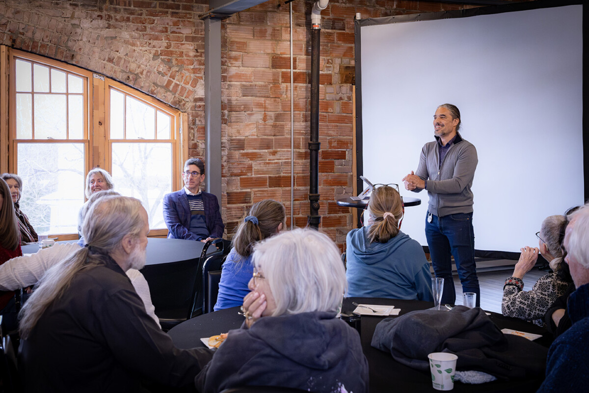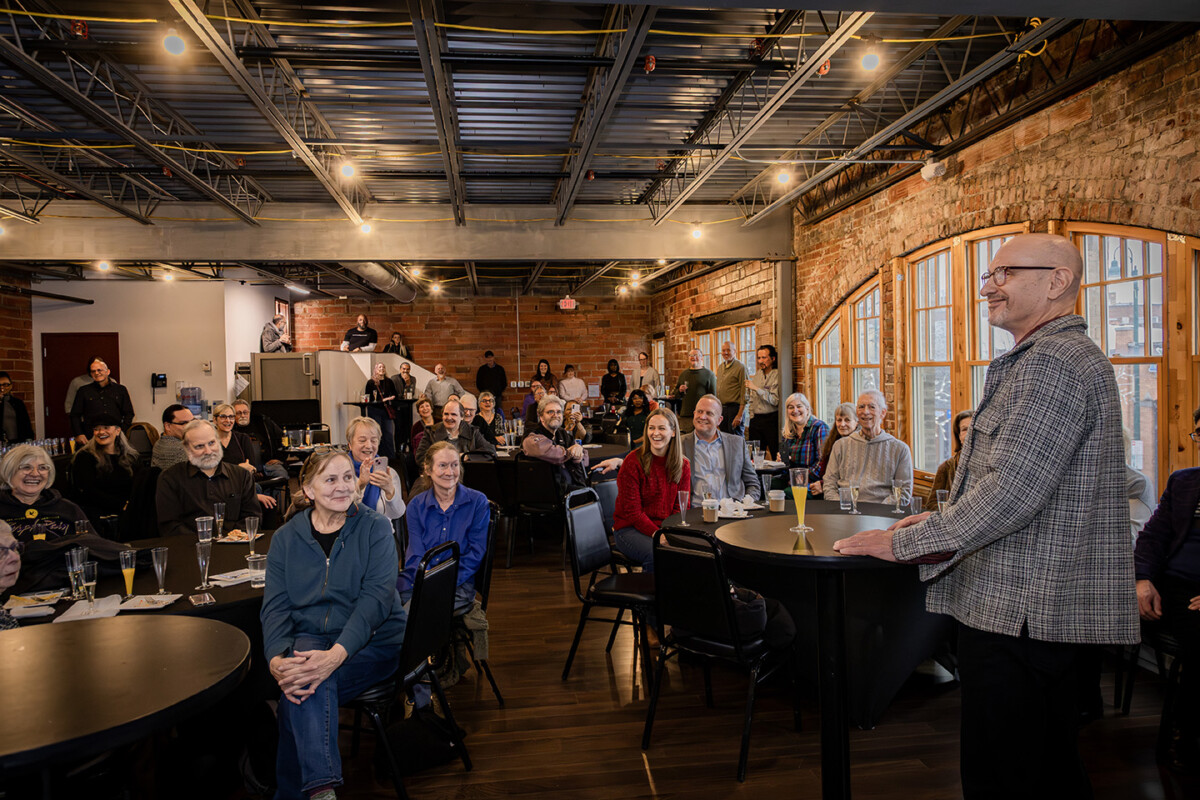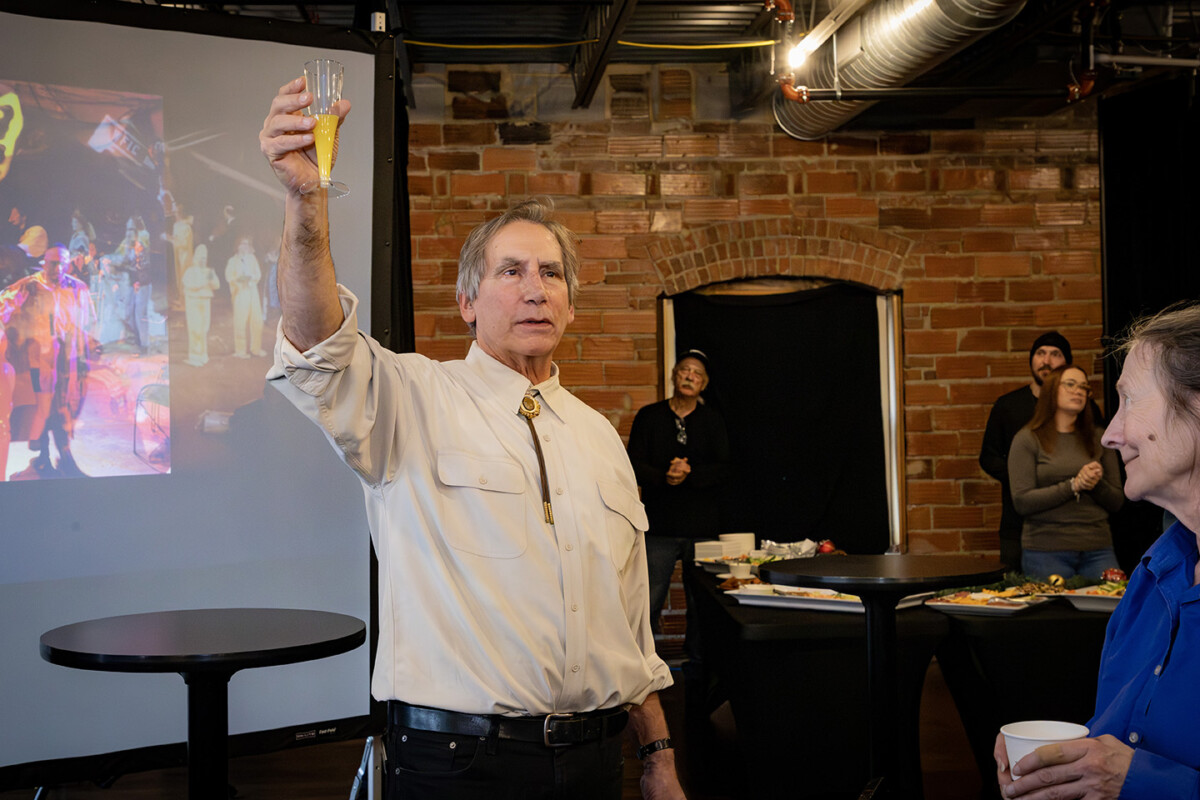 Current Executive Artistic Director Raymond Bobgan led the dedication, which was followed by open-mic-style remarks and a song about “Jim” by past staff members and artists.
