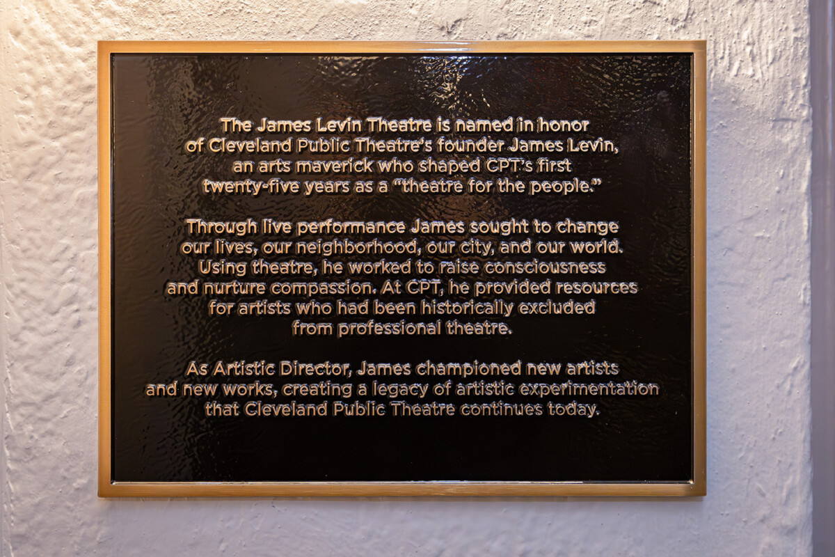 Earlier this month, Cleveland Public Theatre founder James Levin was in the house for a rededication of the second-floor theatre which bears his name. The James Levin Theatre is now immortalized with new signage in time for the pending renovations to the CPT complex.
