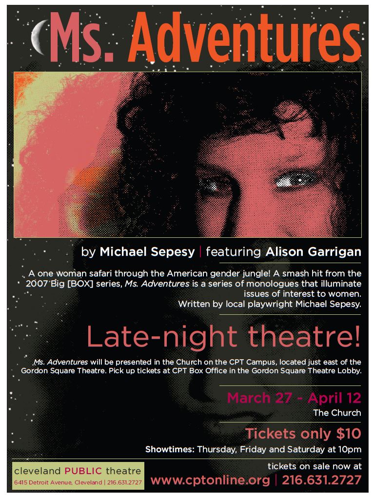 March 27, 2008 - April 12, 2008A smash hit from the 2007 Big [BOX] series, "Ms. Adventures" is a series of monologues that illuminate issues of i…