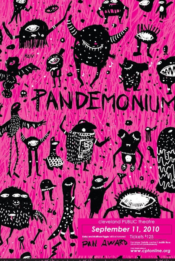 Pandemonium 10 Honorees Matthew and Betsy FiggieThis year’s Pandemonium will feature performances and installations by Lounge Kitty, Lost State of Franklin, Verb Ballets, Inlet Dance Theatre, Wind and Sand, Aaron Bonk, Queue Up, Last Call Cleveland, Lisa Lock, The Greene/Medcalf Movement Project, D.A.M.E., Eric Alleman, Good Things, Deb Magid, Mamai Theatre, Cat Kenney, Matt Mancini, The Sumlins, Alison Garrigan, Ryan Bergeron, Amiee Collier, Ray Caspio, John Kuegeler, scenes from Kill Will, Great Lakes Theater Festival School Residency Program, Anne McEvoy, Basement Apartment Theatre, FiveOne Marching Beasts, Mark Zust, Theatre Ninjas, David Rosen, Browns Rules, Ray McNiece & Friends, Christine Howey, Jen Glowe, the Undercurrents, the Dark Room, Antaeus Dance, Dezare Foster & Frank Polk, Fatima, MegLouise Dance, Sara Whale, Faye & Joan Hargate, Charles Mintz, Carol Mitchell, and many others!
