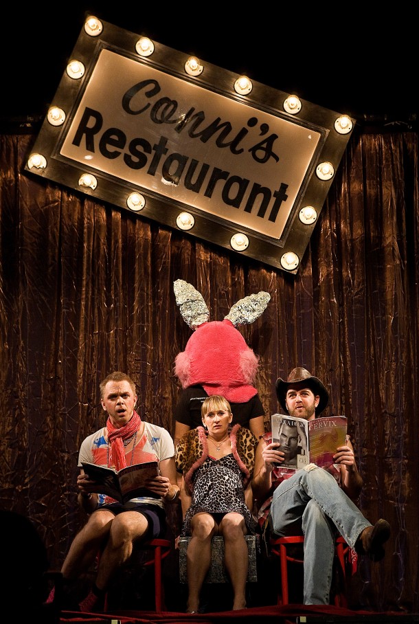Conni’s Avant Garde Restaurant returns this holiday season to bring you their latest, most important pioneering work. Muffin Character Hanshake, the company’s aging diva, shares her struggles with the career-upending decision to have a child- “Motherhood: That’s a show that never closes!” Her miraculous journey begins with a visit from the Soup Angel, and she is encouraged along her way by the Ensemble. The evening will feature a radical and dark re-interpretation of the Nutcracker Suite by ex-pageant queen, Miss Goodi Two Shoes, a rare Q&A with would-be rock ‘n’ roll hall-of-famer Mrs. Robinson, and instructions on the art of bussing tables from general manager Sue James. Throughout the evening, you will treated to a homemade, five-course meal devised by Cleveland’s own ChefChef BonBon, and holiday cheer dispensed by Doctor Smith and our barkeep Hunter.