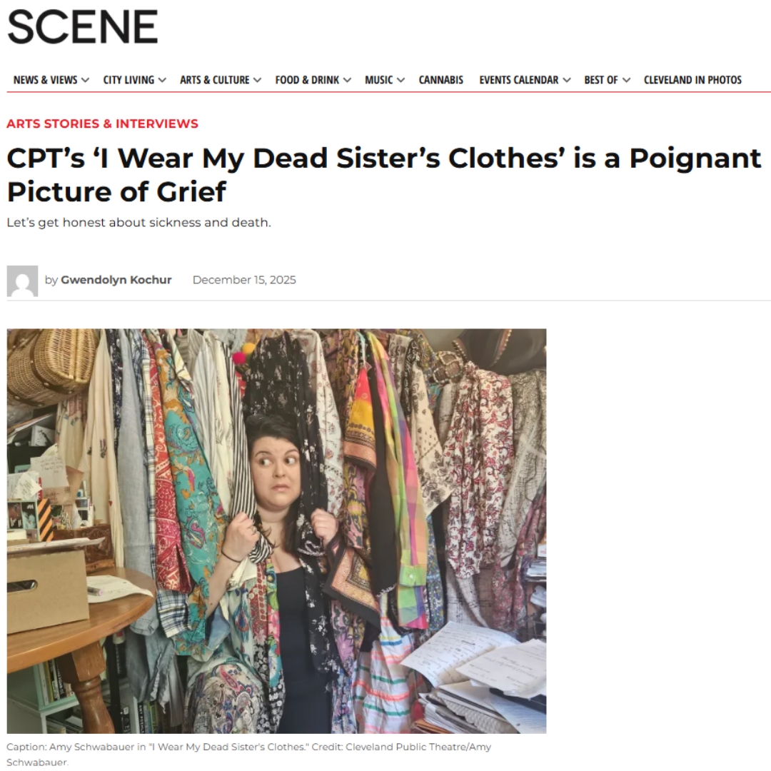 Cleveland Scene: https://www.clevescene.com/arts/arts-stories-and-interviews/cpts-i-wear-my-dead-sisters-clothes-is-a-poignant-picture-of-grief/