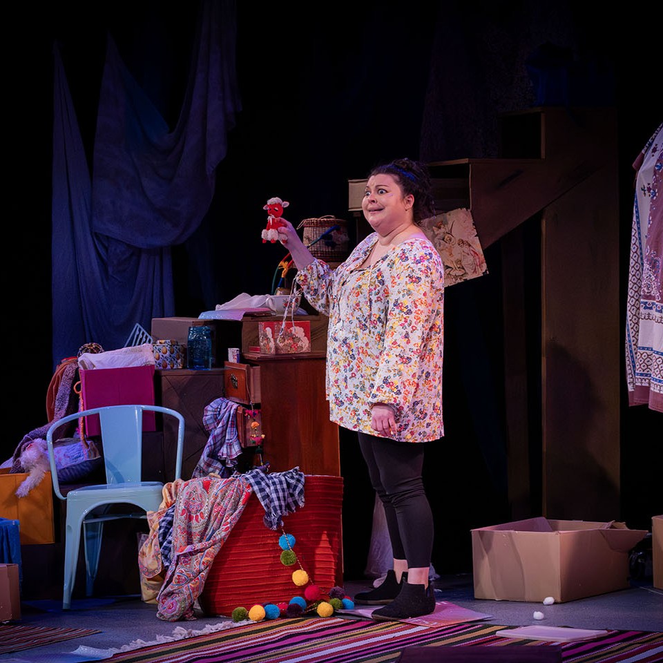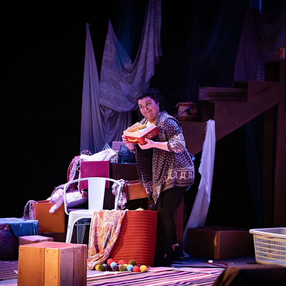 I Wear My Dead Sister’s Clothes, written and performed by Amy Schwabauer, is an autobiographical dark comedy about what it means to love and grieve a difficult person. While cleaning out her deceased sister’s house, Amy sorts through the messy baggage of their relationship and asks herself the tough questions, like why did her sister need four identical dish drainers? Loss haunts Amy as she empties out every closet, but laughs come just as easily as tears when she wears her dead sister’s clothes.