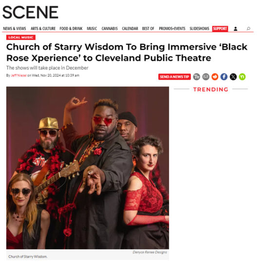 In this Cleveland Scene feature, Church of Starry Wisdom reveal The Black Rose Xperience is like “the movie we never got to make.” Jeff Niesel’s whole article is a fun glimpse at the narrative, themes, and influences in this cinematic, theatrical concert experience, full of nuggets like this:
