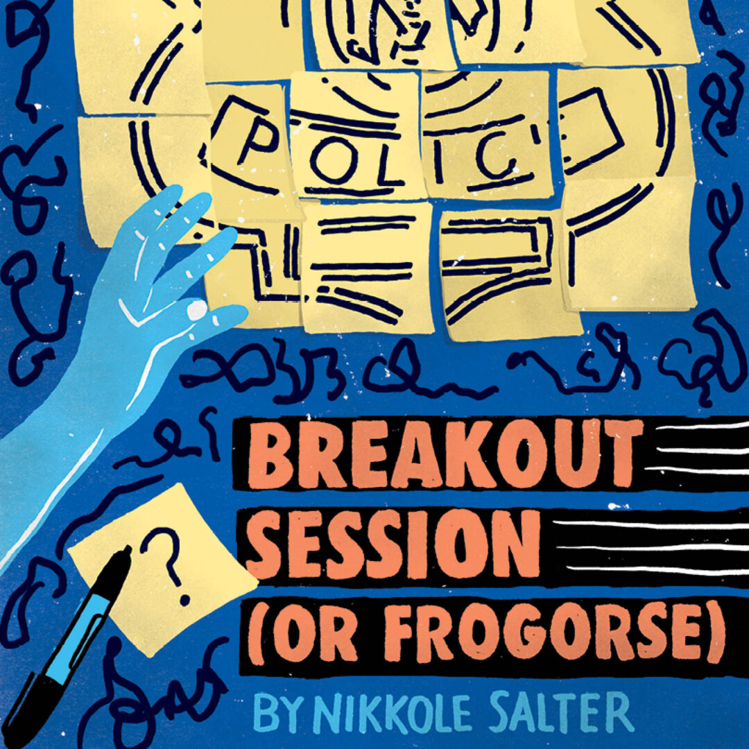 Can a society legislate a change of heart? In Breakout Session (or Frogorse), a corporate training company is vying for a city contract for De-escalation and Anti-bias Training with Cleveland’s Police Department. When the white facilitator, presenting to Black and Latino police officers, tosses the approved curriculum out the window to ignite change her way, the session spirals in unexpected ways. Can a mantis shrimp and a crocodile teach us about building trust and the strength of vulnerability? Inspired by Cleveland’s Consent Decree with the U.S. Department of Justice, Breakout Session (or Frogorse) was commissioned by Cleveland Public Theatre with funding from the National New Play Network (NNPN). Continued World Premiere.